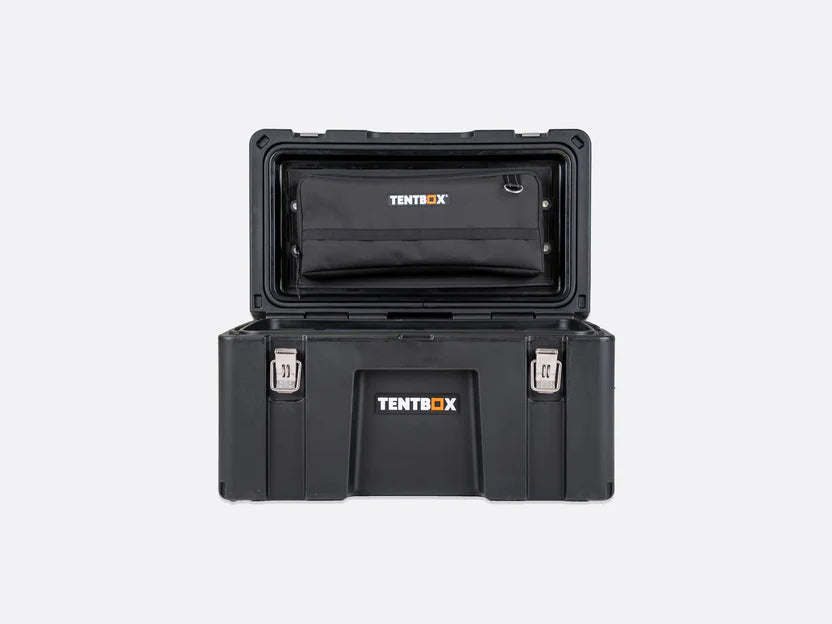 Compacte, résistante et pratique, cette boîte permet de stocker les vis, écrous, clés ou autres petites pièces indispensables à votre tente de toit TentBox.