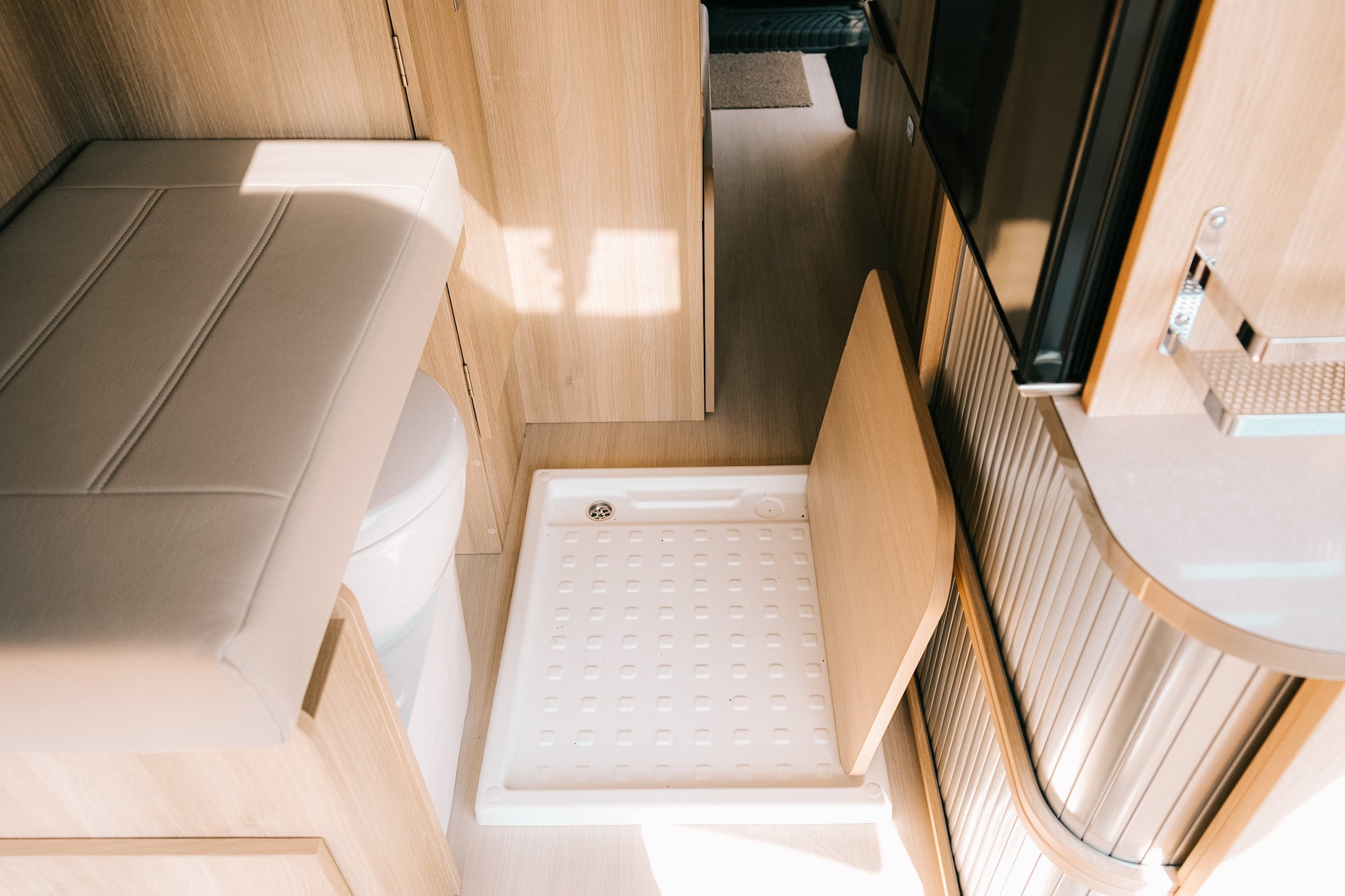 Sanitaire : Espace douche intégré à l'arrière, WC à cassette