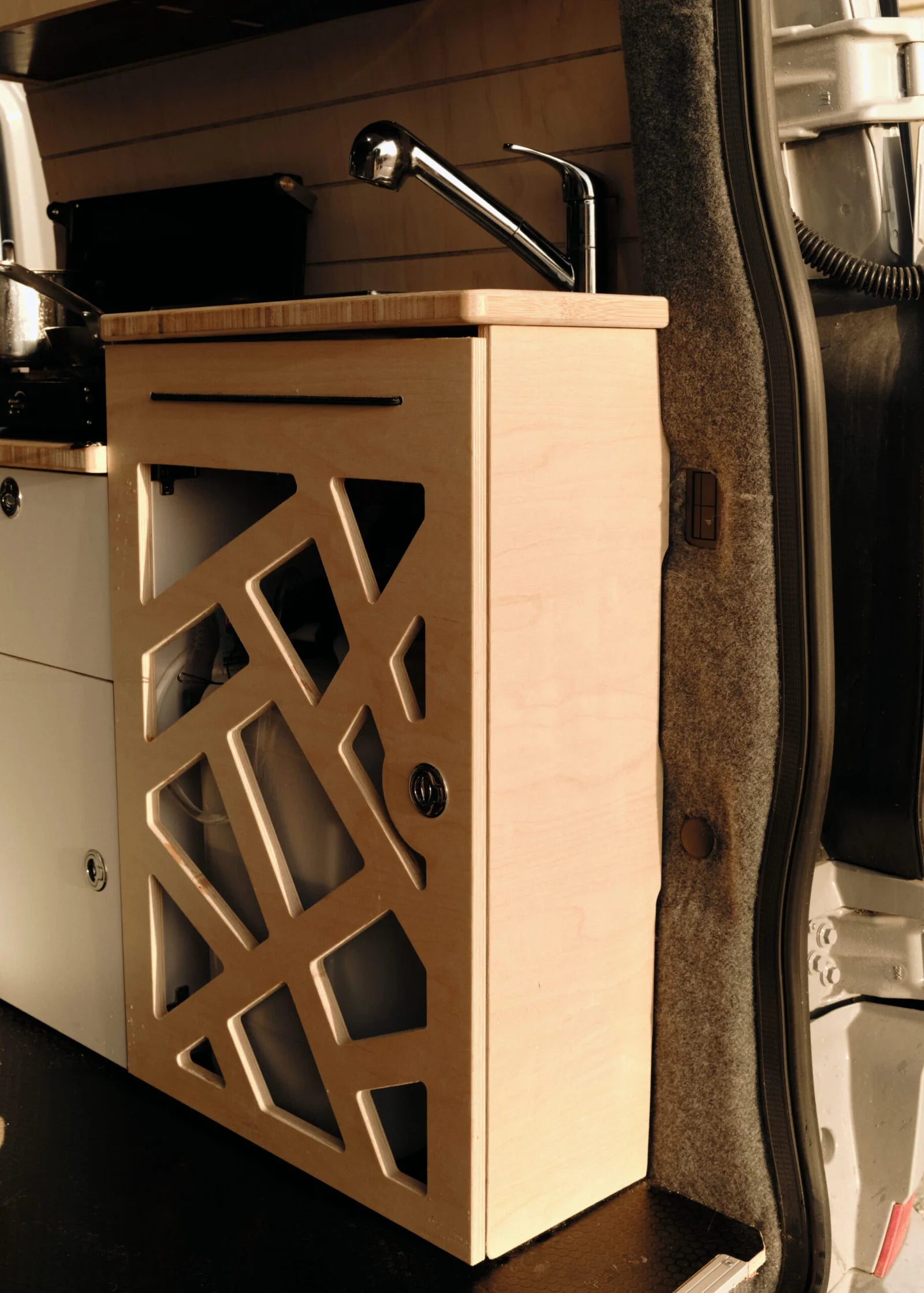 Ajustement Parfait : Tous les meubles sont découpés numériquement pour s'adapter parfaitement à la courbure de votre modèle de van, optimisant chaque centimètre.