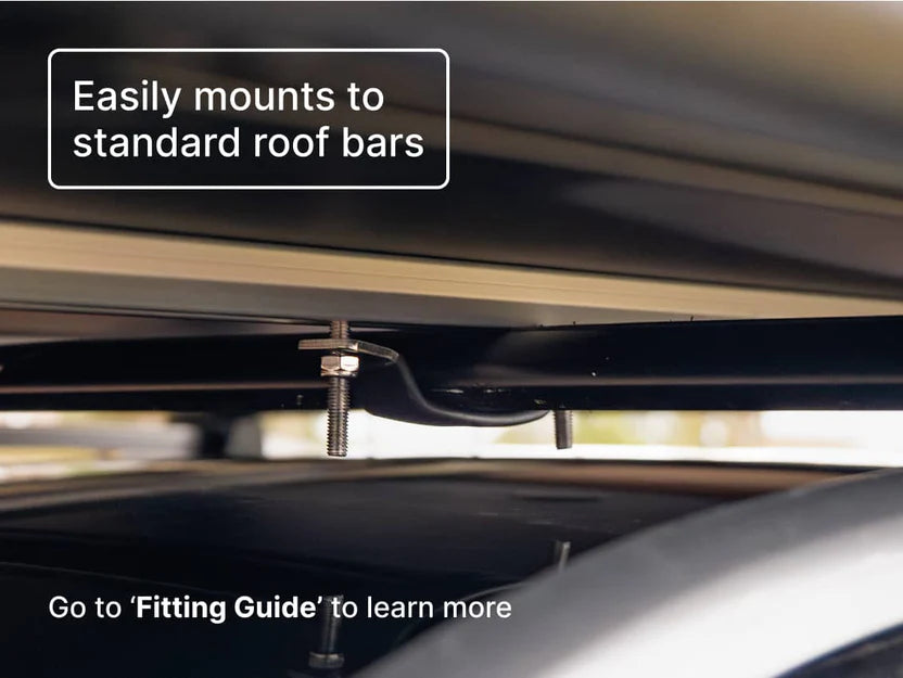 Compatible avec la majorité des SUV, 4x4, breaks et vans. Requiert des barres de toit capables de supporter une charge dynamique minimale de 50 kg. Aucun perçage ni modification du véhicule n’est nécessaire. Le système universel de fixation s’adapte à la plupart des barres transversales en aluminium ou en acier.